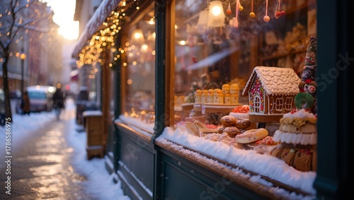 Enchanting Bakery Window Filled with Magical Gingerbread Creations and Holiday Goodies