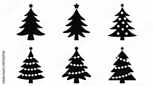 Enchanting Black and White Christmas Tree Silhouettes with Sparkling Festive Lights