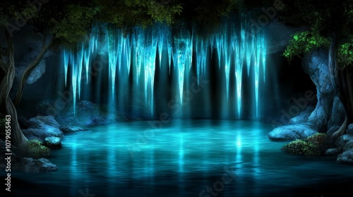 Enchanting Blue Grotto Magical Icy Cave Lake Fantasy Background