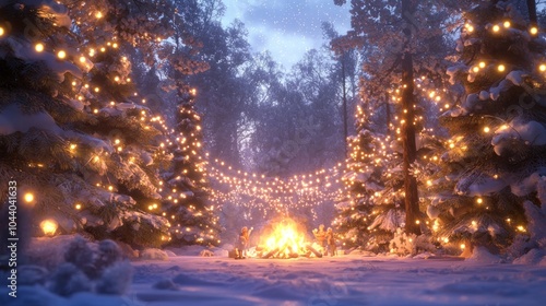 Enchanting Christmas Bonfire Gathering with Friends - Ultra-Detailed Festive Digital Illustration of Joyful Holiday Celebration in a Magical Outdoor Setting