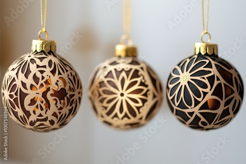 Enchanting Christmas decorations with intricate patterns hanging gracefully, adding festive charm to a cozy holiday atmosphere