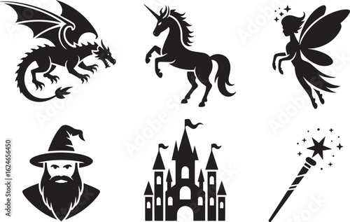 Enchanting Creatures and Wizardry Elements Silhouette Vector Set for Creative Projects