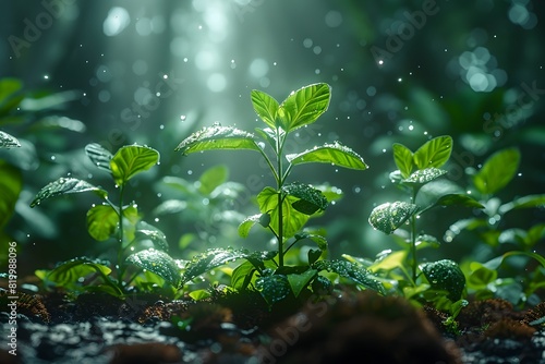 Enchanting Emerald Oasis:A Captivating Close-up of Lush Foliage and Glistening Dew Drops