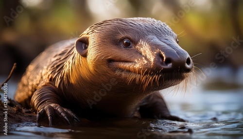 Enchanting Encounter A Stealthy Platypus Swims Through Lush, Tropical Rainforest Waters, Showcasing Dazzling Fur and Distinctive Bill in a Mesmerizing Australian Wildlife Scene.