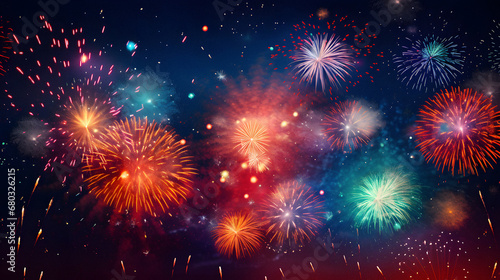 Enchanting Firework Display Lighting up the Night Sky, Enhanced with Bold and Vivid Tones to Convey a Festive and Joyous Atmosphere