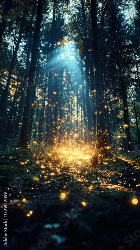 Enchanting glimmer of light in a mystical forest nature photography ethereal atmosphere enchanted view