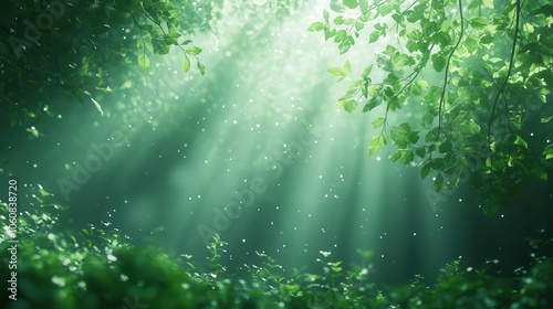enchanting image of a misty rainforest with layers of green foliage and soft sunlight filtering through creating a magical and serene environment that highlights the beauty of nature