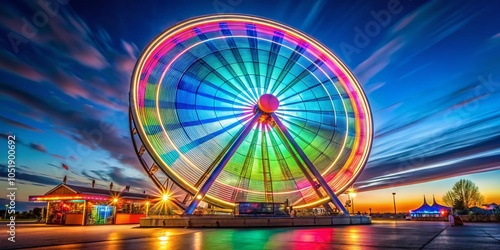 Enchanting Long Exposure of a Cute Ferris Wheel Under a Clear Blue Sky