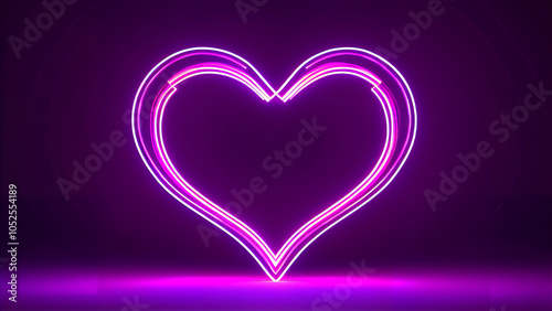 Enchanting Love: A Vibrant Digital Illustration of a Big Heart, Blending Romantic Pink and Purple Hues with Shiny Red Accents, Illuminated by Magical Neon Lights and Glitter