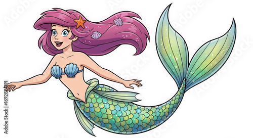 Enchanting mermaid with flowing pink hair and shimmering green tail underwater fantasy scene transparent background