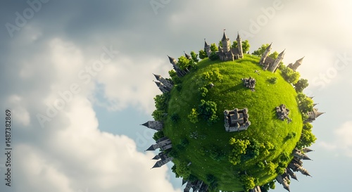 Enchanting Miniature World: Castles and Greenery on a Verdant Planet