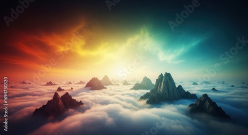 Enchanting Mountain Peaks Emerging From A Sea Of Clouds Under A Cosmic Sky