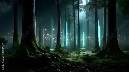 Enchanting Neon Forest Night Scene - Fantasy/Sci-fi