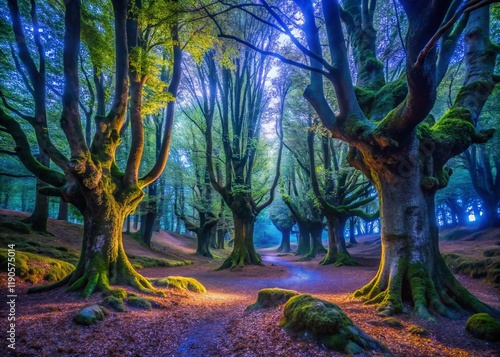Enchanting Night Photography: Otzarreta Beech Forest, Gorbeia Natural Park, Basque Country
