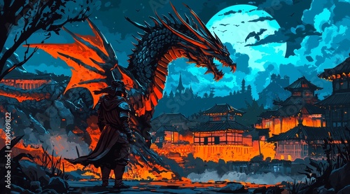 Enchanting visuals showcase a dragon keeping watch over an Asian community.