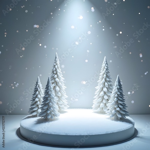Enchanting Winter Whimsy Snowy Decor on Glossy White Platform
