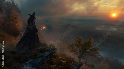 Enchanting Witch Silhouette at Magical Sunset: A Mystical Twilight Adventure