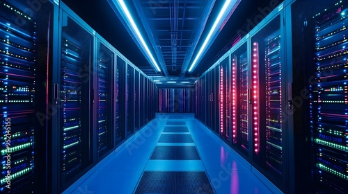 Encrypted data hardware and security technology installed in a modern data center facility The image showcases the critical infrastructure and components required for secure data processing storage