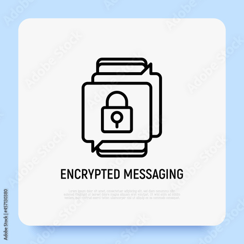 Encrypted messaging thin line icon, locked text in speech bubbles. Modern vector illustration.