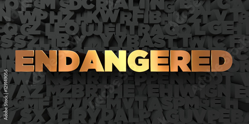 Endangered - Gold text on black background - 3D rendered royalty free stock picture. This image can be used for an online website banner ad or a print postcard.