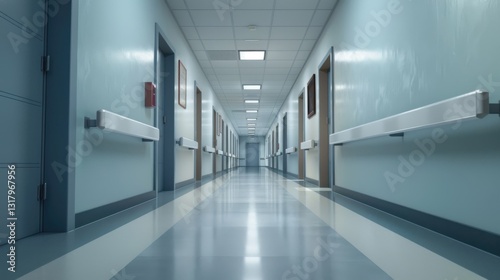 Endless corridor in a tranquil hospital, evoking thoughts of healing and hope