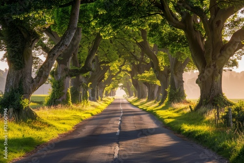 Endless road of travel on rural highways There are natural trees on both sides of the road.