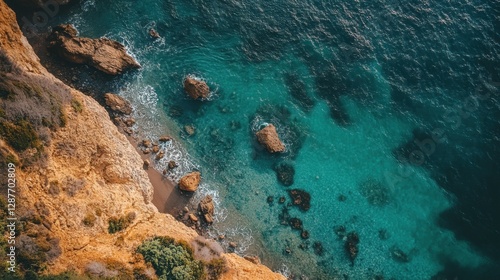 Endless shoreline with clear blue waters stretching towards the glowing horizon
