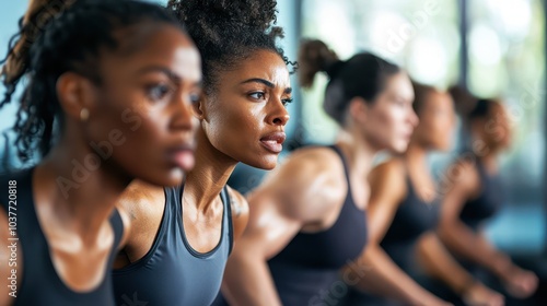 Energetic Group Fitness Class in Progress, Featuring Diverse Individuals Engaged in a High-Energy Workout Session