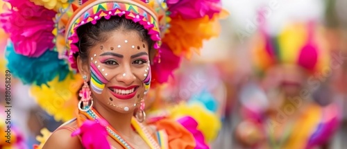 Energetic Puerto Rican Carnival with bright costumes and lively parades, festive event, Hispanic Heritage Month