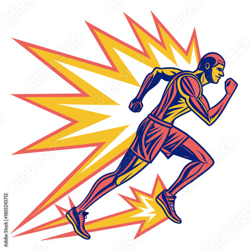 Energetic Runner: A dynamic illustration of a runner sprinting forward, radiating power and speed, with vibrant energy lines symbolizing motion and determination.