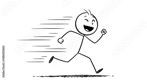 Energetic stick figure sprints forward with sheer exuberance and velocity
