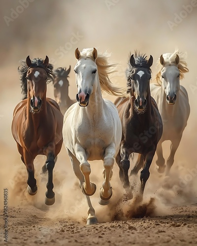 Energetic wild horses charging across open land high resolution picture