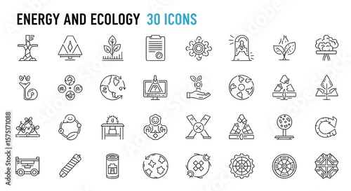 Energy and Ecology 30 Icons | Line Art Vector Pack for Environmental Science, Green Technology, and Sustainable Living Designs