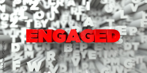 ENGAGED - Red text on typography background - 3D rendered royalty free stock image. This image can be used for an online website banner ad or a print postcard.
