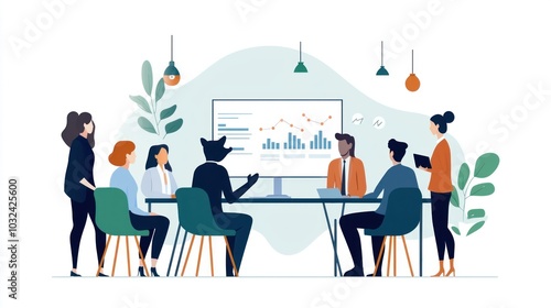 Engaging business meeting a collaborative session analyzing data trends with team members presenting insights on growth strategies