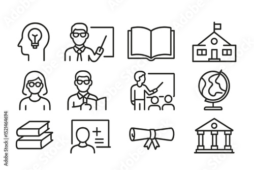 Engaging educational icons illustrating teaching, learning, and academic success in a classroom setting