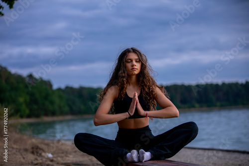 Engaging in Peaceful Meditation by the Tranquil Lake during the Beautiful Dusk Hours
