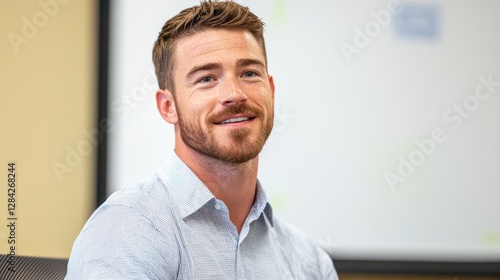 Engaging Leader in Team Discussion with Whiteboard Presentation