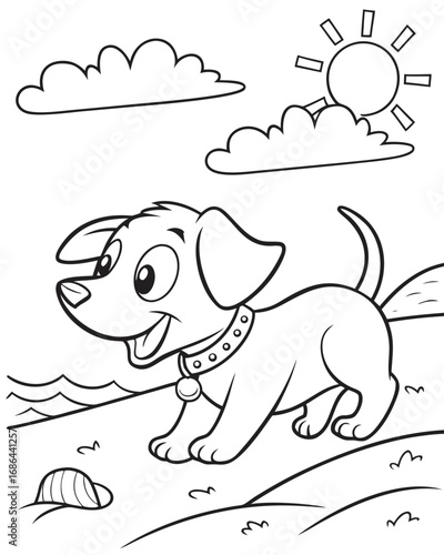 Engaging Puppy Beach Adventure A Delightful Coloring Book Page for Children to Unleash Creativity and Imagination