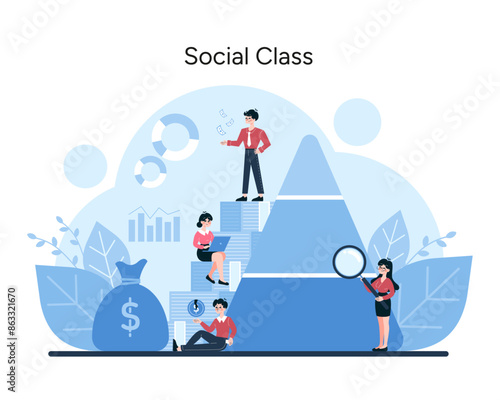 Engaging vector artwork displaying the assessment of economic status in consumer market division