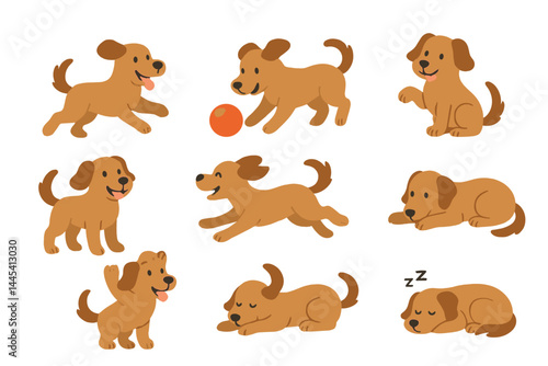 Engaging vector icon of playful and relaxed dogs showcasing various cute poses and activities for creative projects