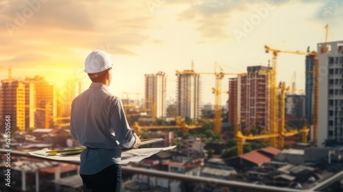 Engineer are inspection and checklist on construction site, Planning and building, Safety and project management with contractor in city for infrastructure.