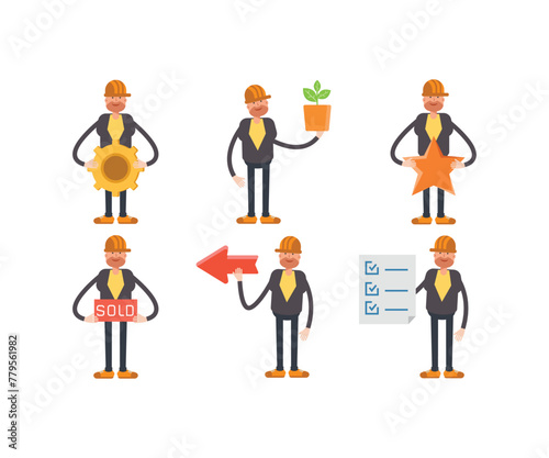 engineer characters in different poses vector set