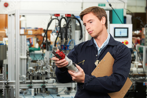 Engineer Inspecting Component In Factory