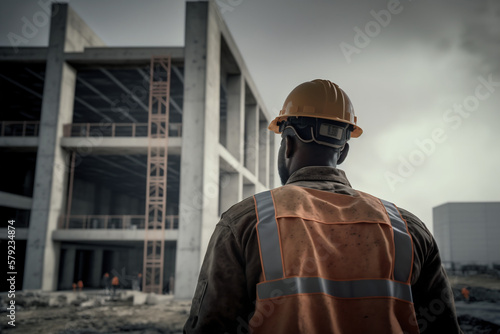 Engineer man looking at a building under construction. Generative AI