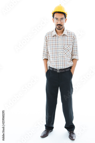 Engineer man standing yellow helmet