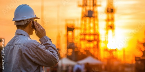 Engineer on Phone at Construction Site During Sunset