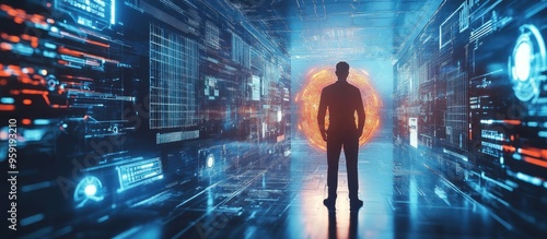 Engineer or businessman utilizing artificial intelligence to enhance industrial systems and online networks for advancing future technology