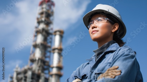 Engineer overseeing operations at oil refinery industrial site day
