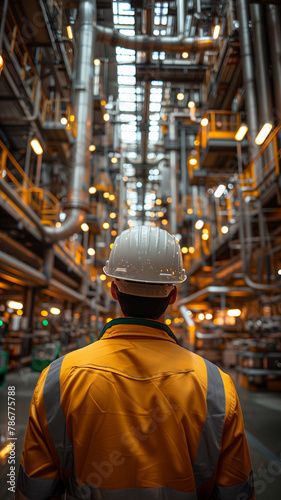 Engineer standing at Industrial view at oil refinery plant from industry zone.